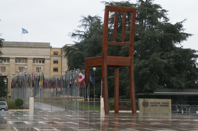 Switzerland - Geneva: Broken Chair..only 3 legs