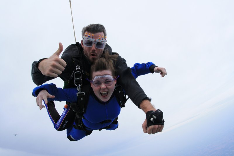 2012 Skydiving - Alyssa's First Time: She's liking the free falling part
