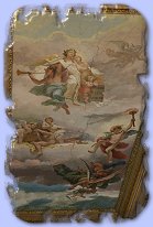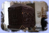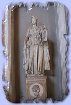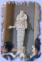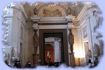 Art and sculptures on ceiling and walls of hallway